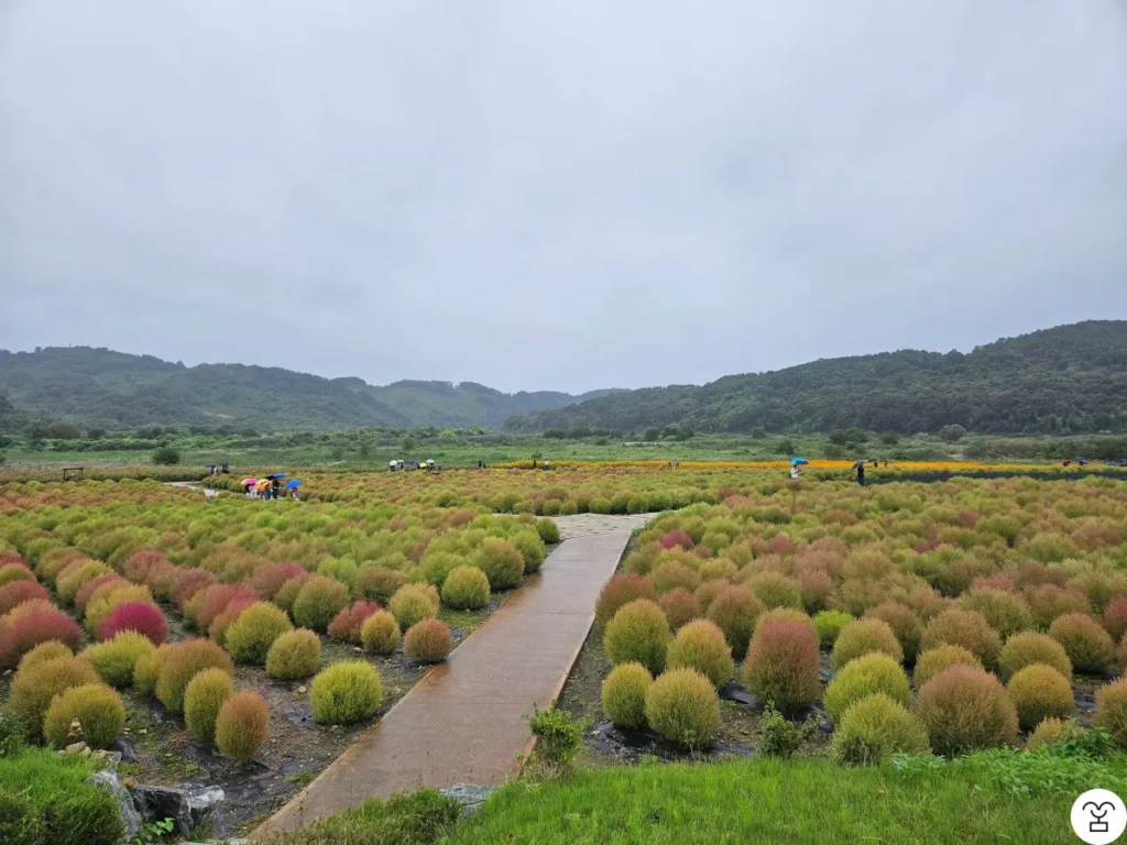 The broom cypress hadn’t turned red yet—most of it was still green, which was a bit disappointing. But it was still nice to see the vast field covered with broom cypress.