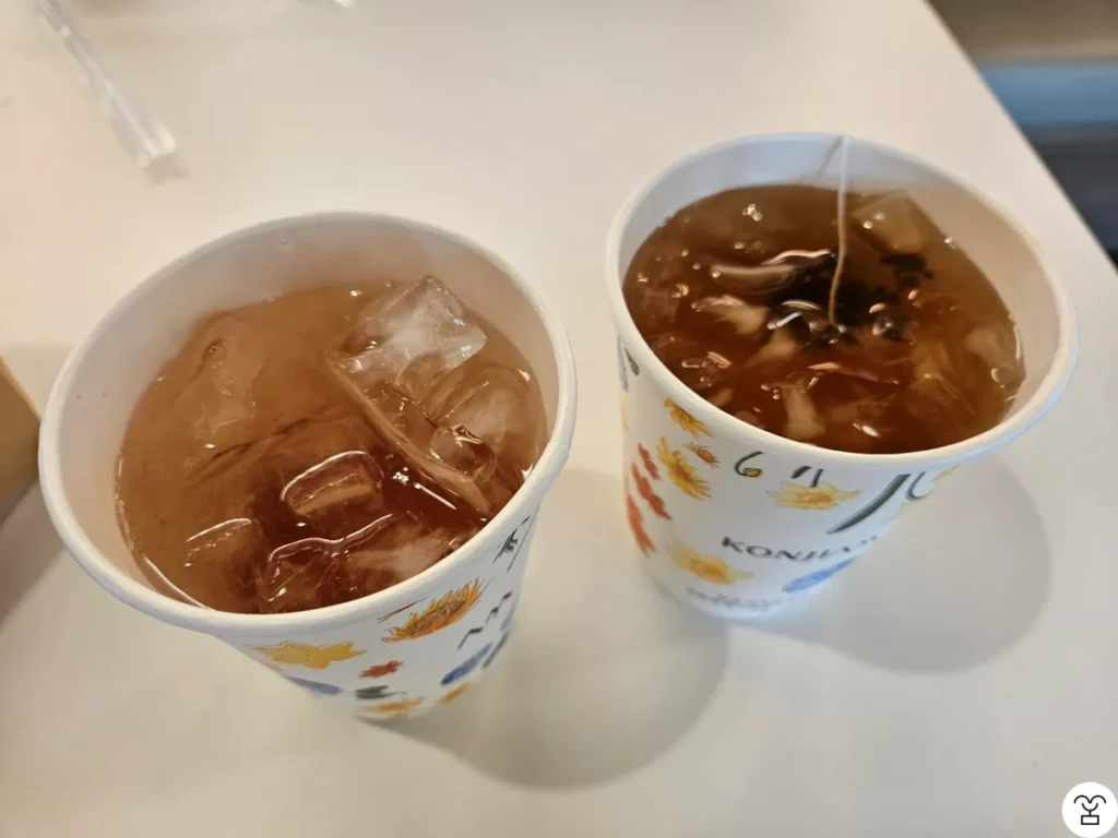 When you enter Hwadam Forest, you’ll see a cafe on the right. The receipt lists the name as “Hwadam Forest Cafe.” I ordered three kkwabaegi (twisted doughnuts), a pumpkin tea, and an omija tea. Both teas were iced.