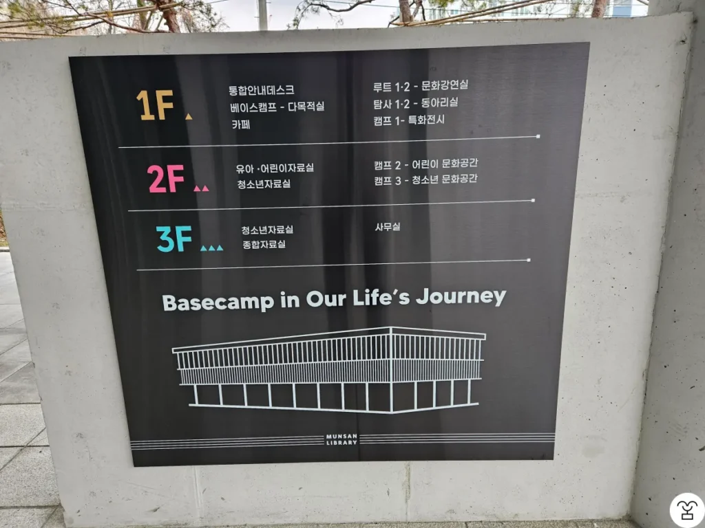 I briefly looked around inside Munsan Library. There is a café on the first floor, and books from the second to the third floor. Please refer to the photo below for the floor guide. I intentionally did not take interior photos. Since the building is spacious and new, I noticed there is plenty of room for new books.