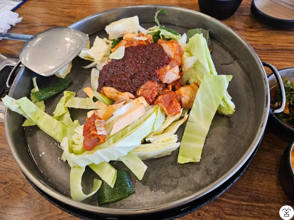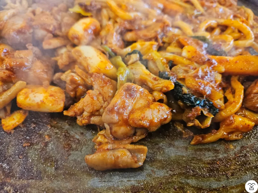 The dakgalbi is not mild, so I cannot recommend it to those who dislike spicy food. It feels spicier than Shin Ramyun. Personally, I would prefer it a little less spicy, but the combination of warm ingredients on the iron plate and the stimulating spiciness is appealing. The ingredients themselves are not particularly special.