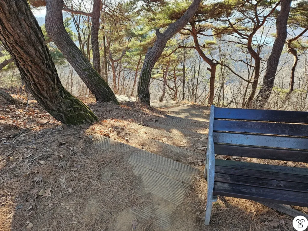 There is a set of stairs going down next to a bench near the Jangwon Bell. I once came up using these stairs.
