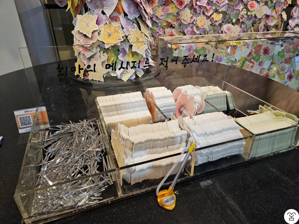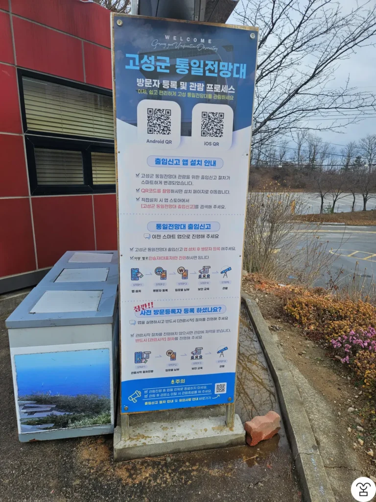 To visit the Goseong Unification Observatory, you must submit an entry report. First, you need to go to the Unification Observatory Entry Reporting Office. You can register as a visitor through an app and pay the admission fee and parking fee on site. Then, at the Security Education Center next to the reporting office, you are required to watch a security education video. However, there was no one checking whether the video was actually watched. After the video ends, you can proceed to the Unification Observatory.